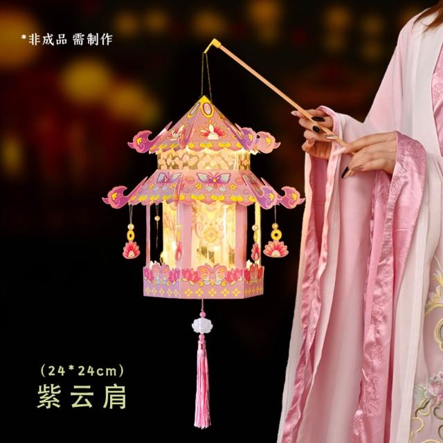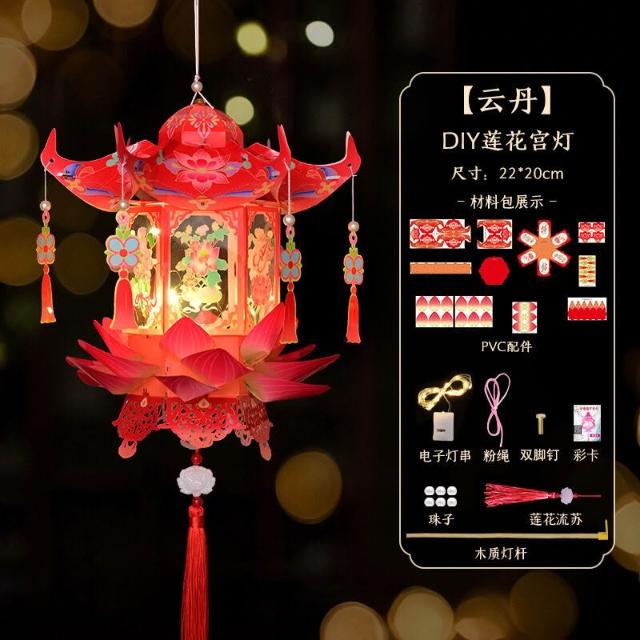 (兩個起購)馬年國潮古風燈籠手工diy花燈兒童手提宮燈發光投影新年燈籠兒童