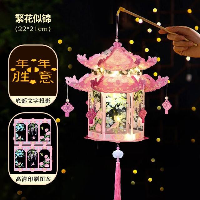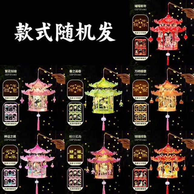 (兩個起購)馬年國潮古風燈籠手工diy花燈兒童手提宮燈發光投影新年燈籠兒童