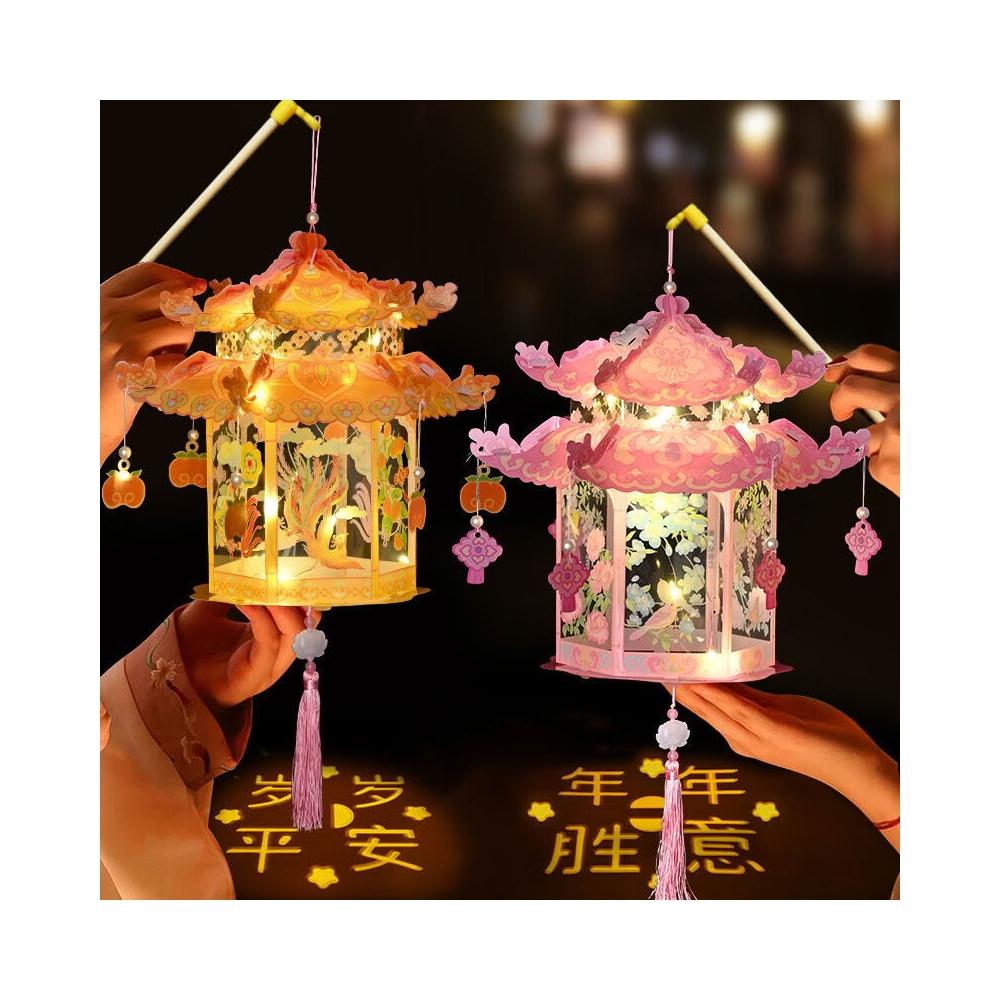 (兩個起購)馬年國潮古風燈籠手工diy花燈兒童手提宮燈發光投影新年燈籠兒童
