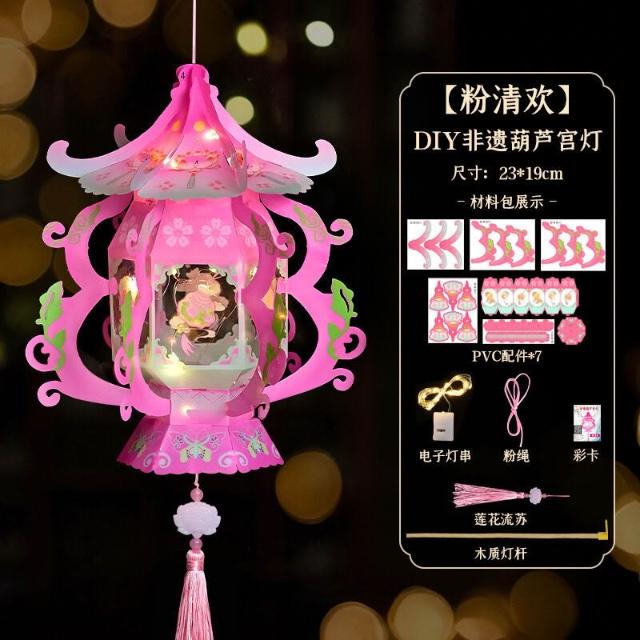 (兩個起購)馬年國潮古風燈籠手工diy花燈兒童手提宮燈發光投影新年燈籠兒童