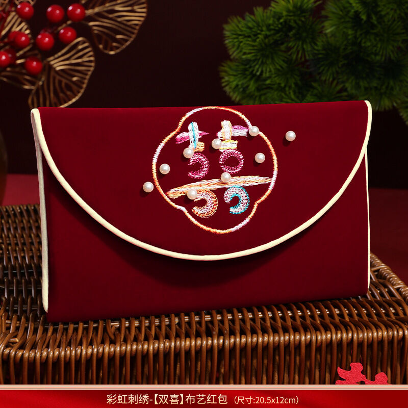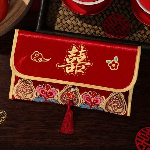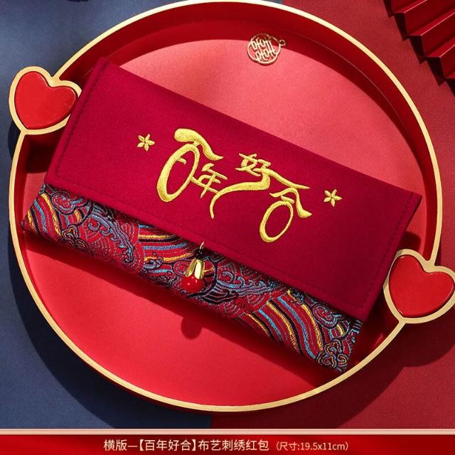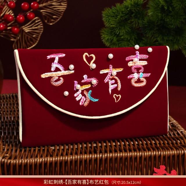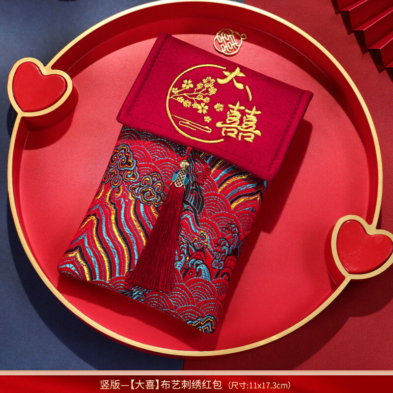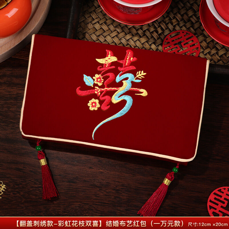 (2個起購)紅包袋布藝結婚專用2026新款萬元訂婚高檔刺繡利是封包敬茶改口費