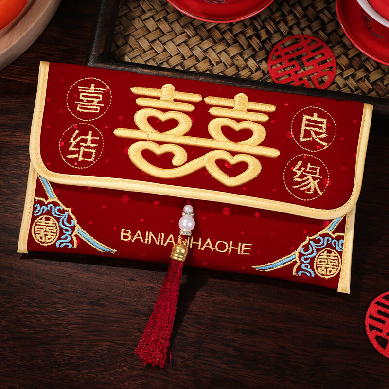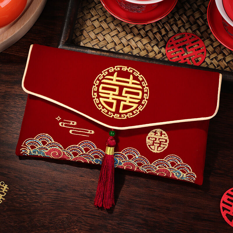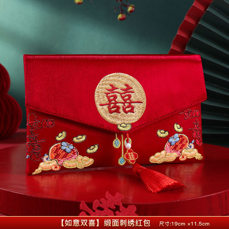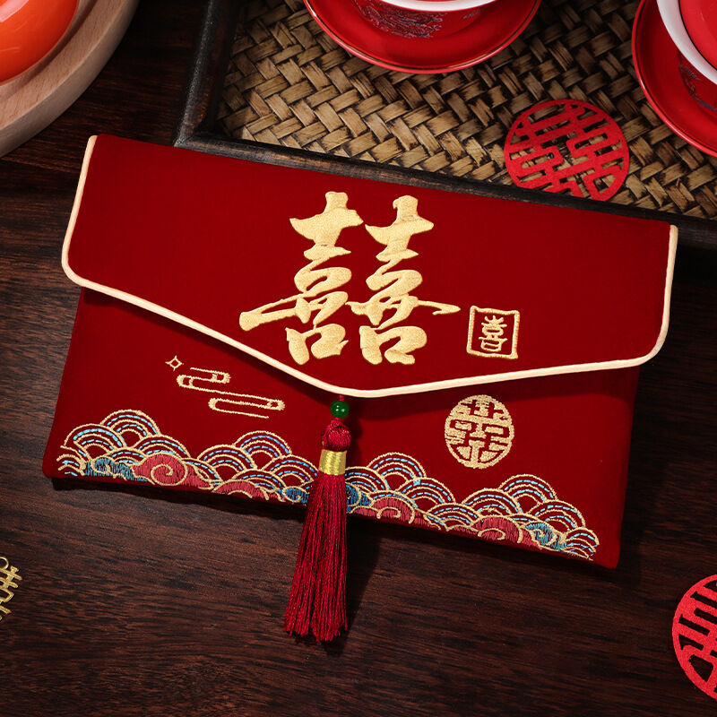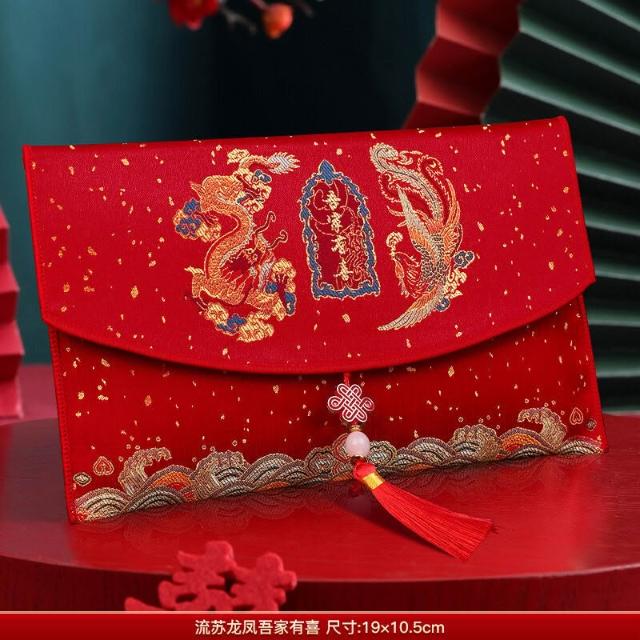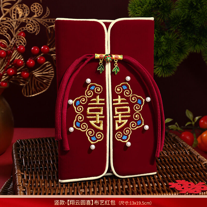 (2個起購)紅包袋布藝結婚專用2026新款萬元訂婚高檔刺繡利是封包敬茶改口費