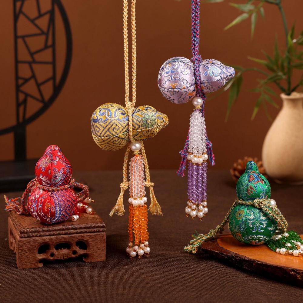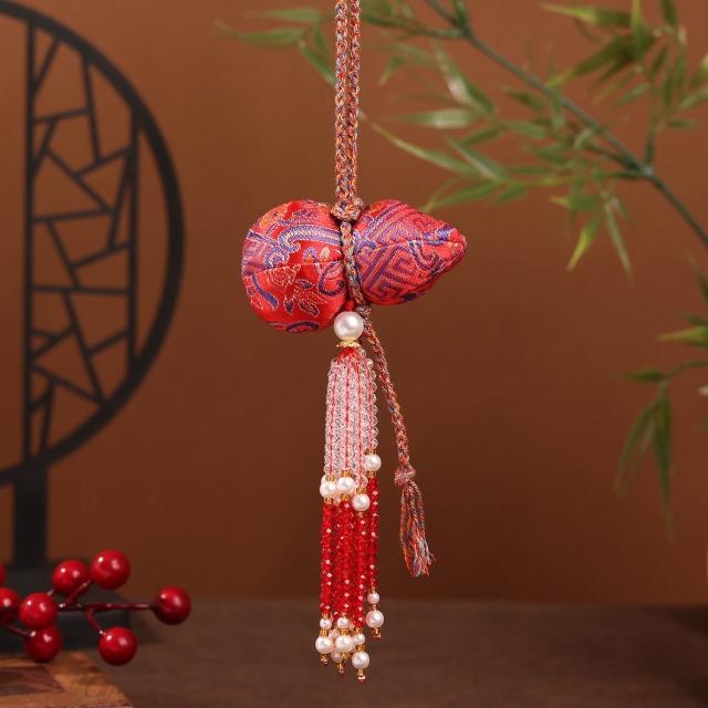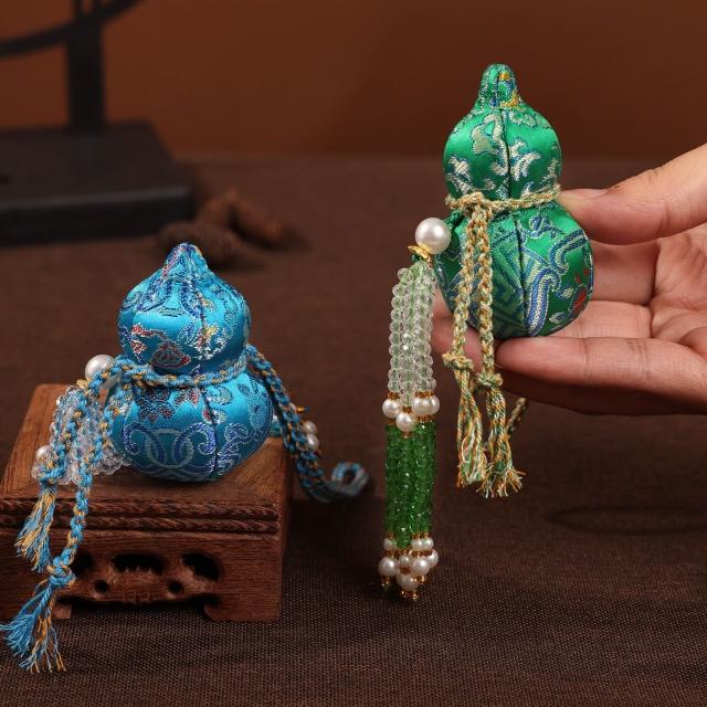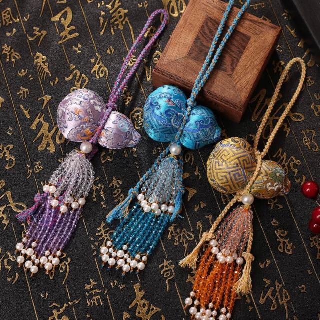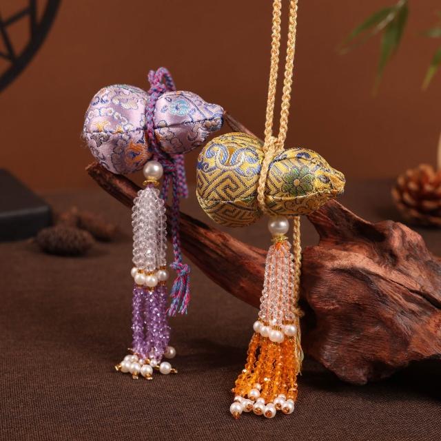 水晶流蘇宋錦葫蘆掛件刺繡香囊包包鑰匙扣掛飾漢服配件文創小禮品