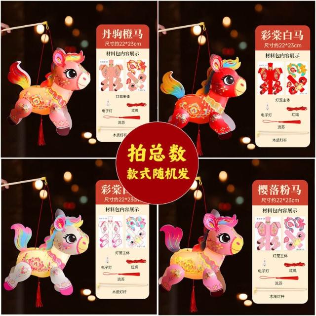 (2個起購)2026馬年pvc國潮小馬燈籠卡通燈籠新年春節節兒童手工diy手提燈籠