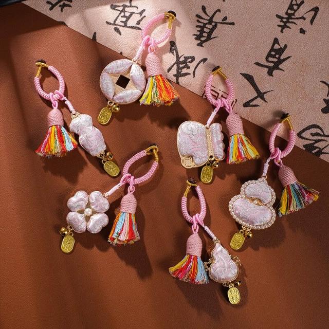 粉色宋錦手工掛件diy成品小馬葫蘆掛飾新年婦女節團建沙龍禮物