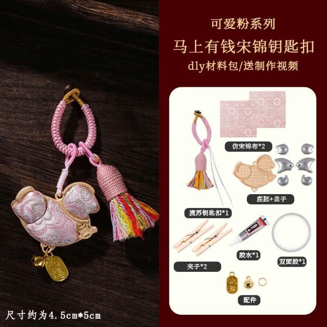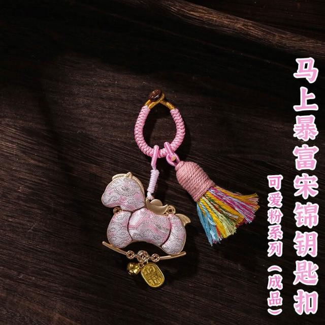 粉色宋錦手工掛件diy成品小馬葫蘆掛飾新年婦女節團建沙龍禮物