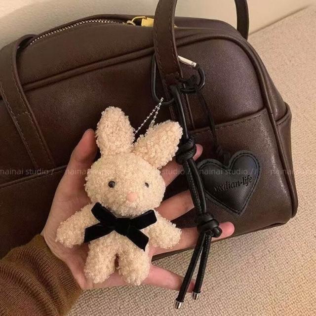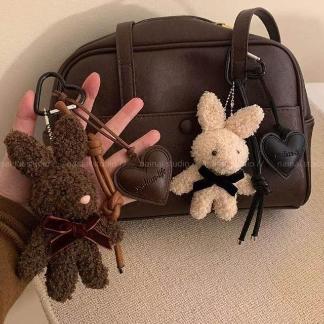 miu系風卡通玩偶可愛鑰匙扣禮物毛絨小兔子掛件皮革愛心包包掛飾