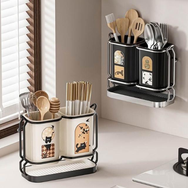 廚房筷子筒臺面筷簍餐具勺子瀝水收納盒家用壁掛免打孔筷籠置物架