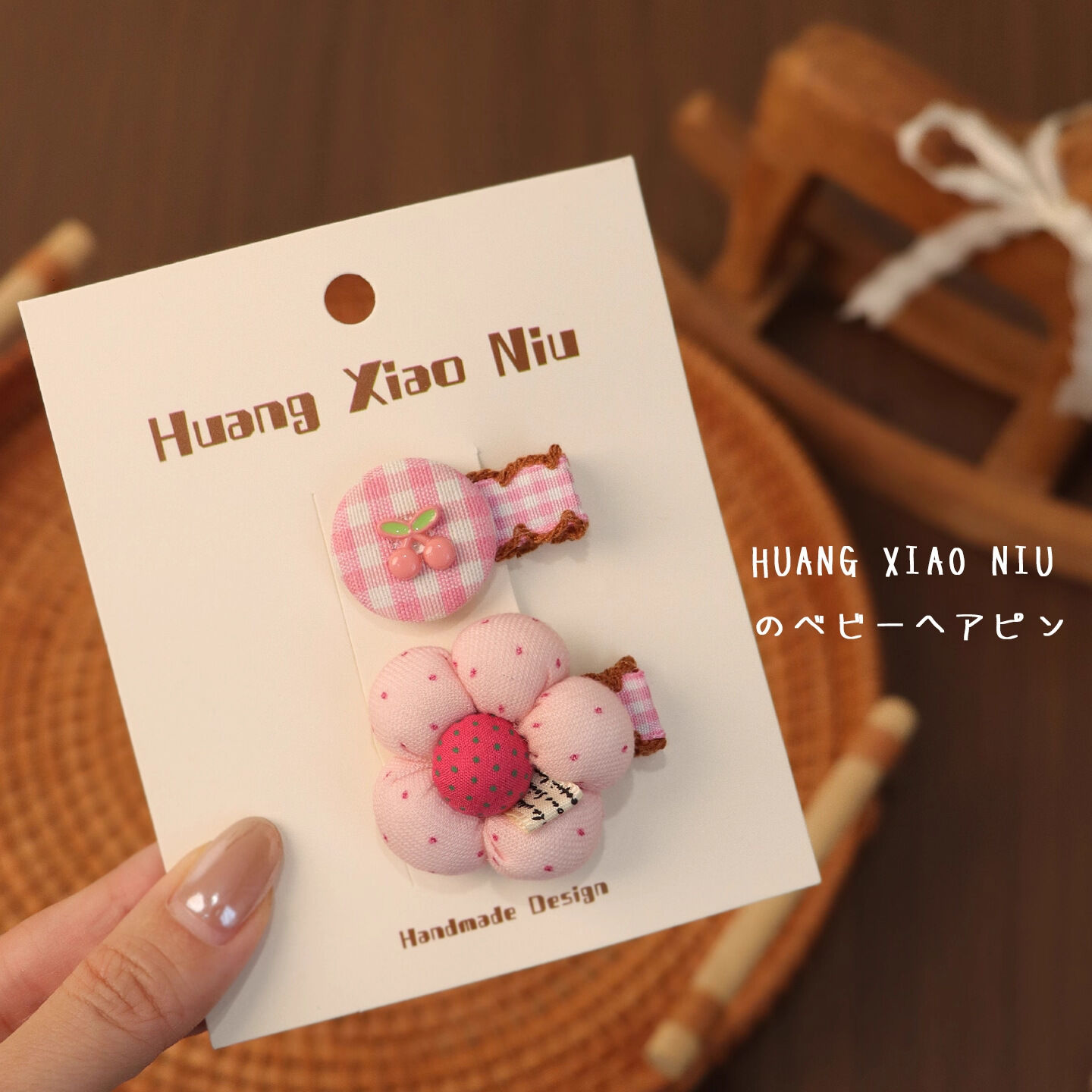 全包布藝粉色櫻桃花朵夾子2026新款春夏韓系發夾女側邊夾發卡頭飾