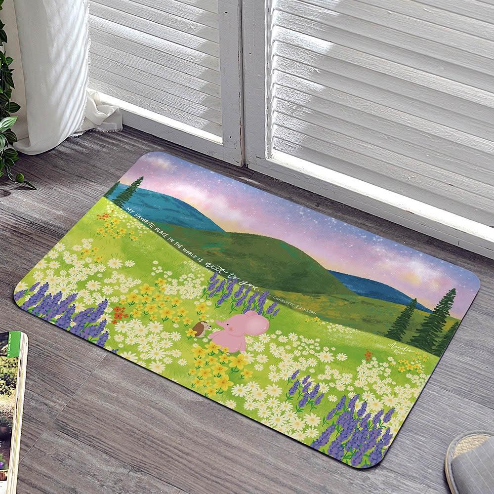 格蕾寢飾Fancy Belle 《花田裡的陪伴》夜光抗菌可水洗軟式珪藻土強效吸水地墊(60*39CM)