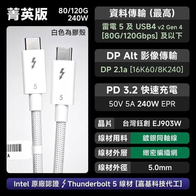光連科技 Intel 認證 Thunderbolt 5 傳輸線 120Gbps 240W | 雷電5 PD3.2 80G