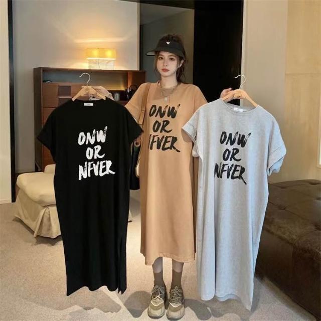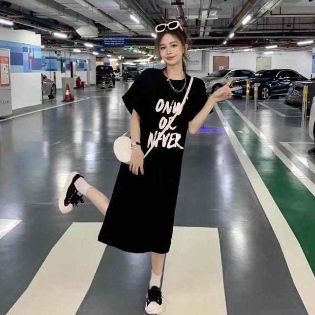 連衣裙 女裝 夏季 新款 大碼 寬鬆 簡約 懶人 裙 長款 過膝 胖 女生衣服 連衣裙 連身裙 中大尺碼 大碼 中長款(#女裝 #韓版 #套裝 #連身裙)