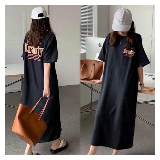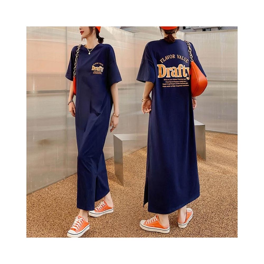 夏季 新款 韓版 時尚 大碼 女裝 開叉 印花 T 恤 長裙 長款 過膝 胖 妹妹 連衣裙 女生衣服 連衣裙 連身裙 t(#女裝 #韓版 #套裝 #連身裙)