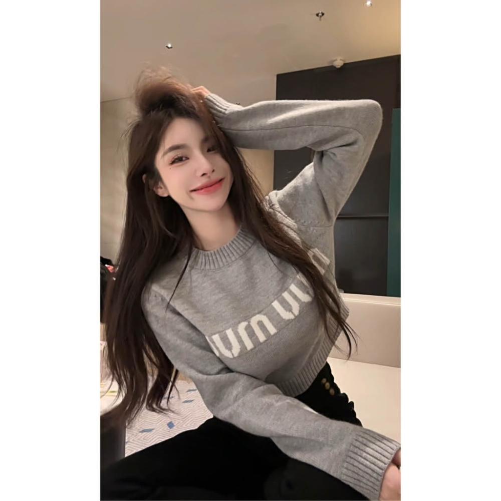 女生衣服 灰色 短款 套頭 毛衣 內搭 正肩 打底衫 小個子 毛衣 針織 針織上衣 氣質穿搭 學院風(#女裝 #韓版 #針織衫 #上衣)