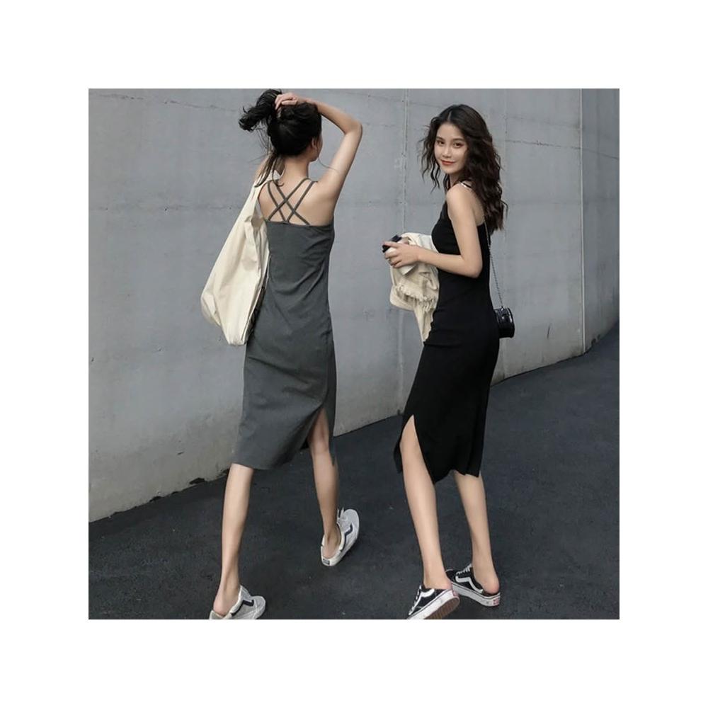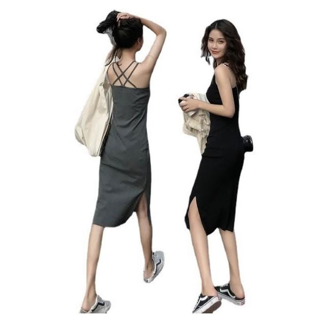 中長款 吊帶 連衣裙 外穿 夏季 新款 女裝 開叉 氣質 顯瘦 內搭 打底 裙子 女生衣服 連衣裙 連身裙 打底 內搭(#女裝 #韓版 #套裝 #連身裙)