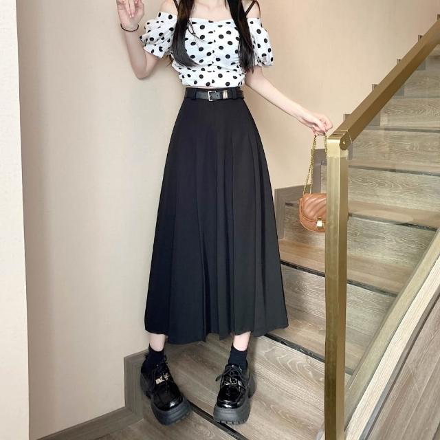 (腰帶款) 西裝 半身裙 女裝 春秋 季 新款 顯瘦 氣質 裙子 百褶 中長 女生衣服 SG05080(#女裝 #韓版 #休閒 #長裙 #半身裙)