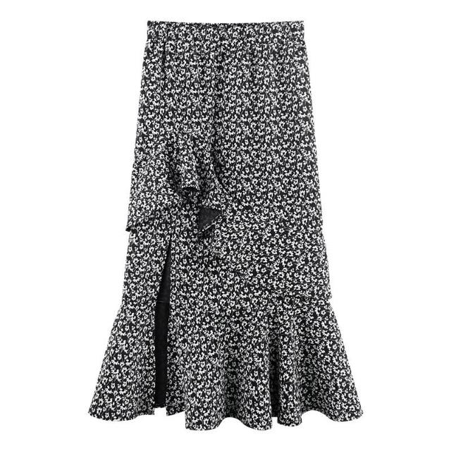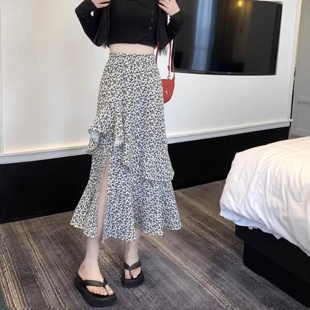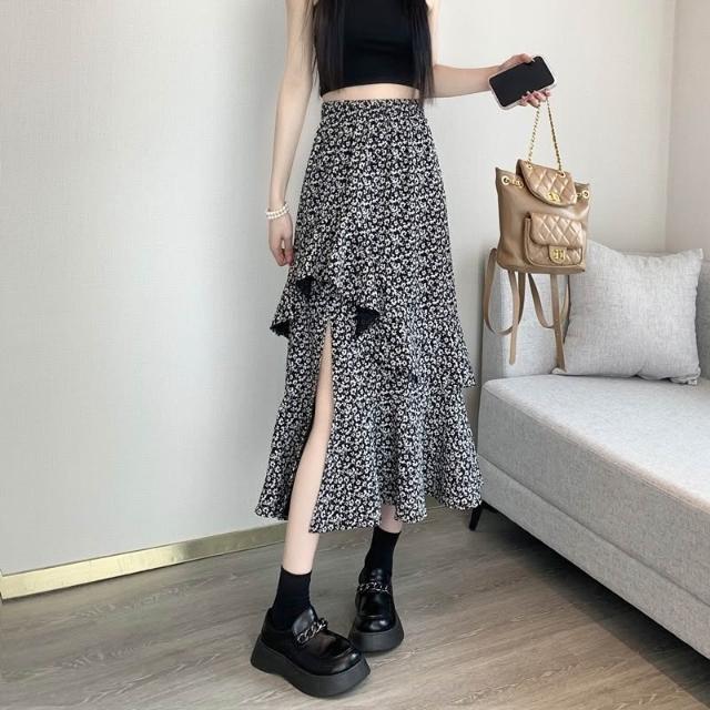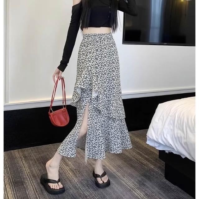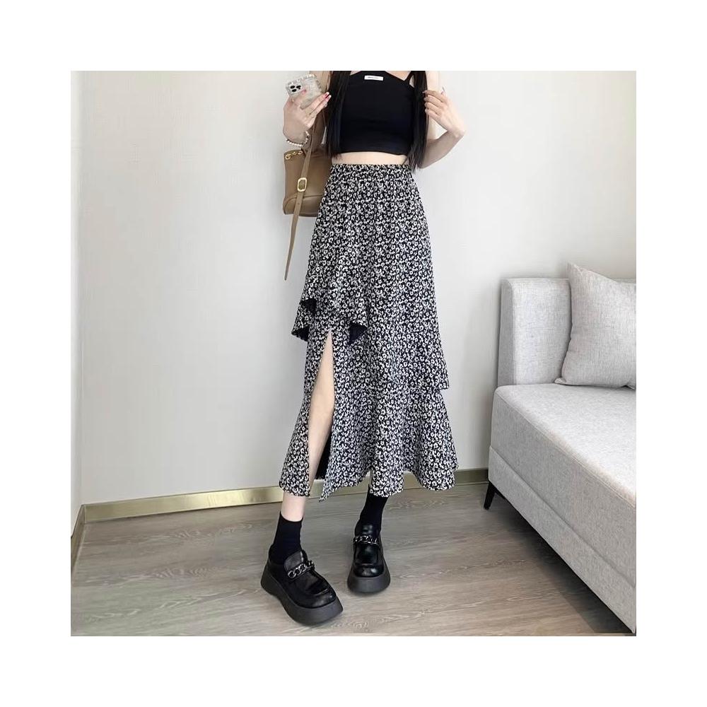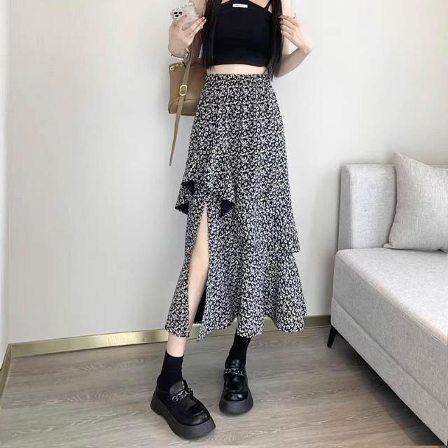 女生衣服 韓版 碎花 不規則 半身裙 高腰 垂 a字裙 小個子 裙子 SG04358(#女裝 #韓版 #休閒 #長裙 #半身裙)