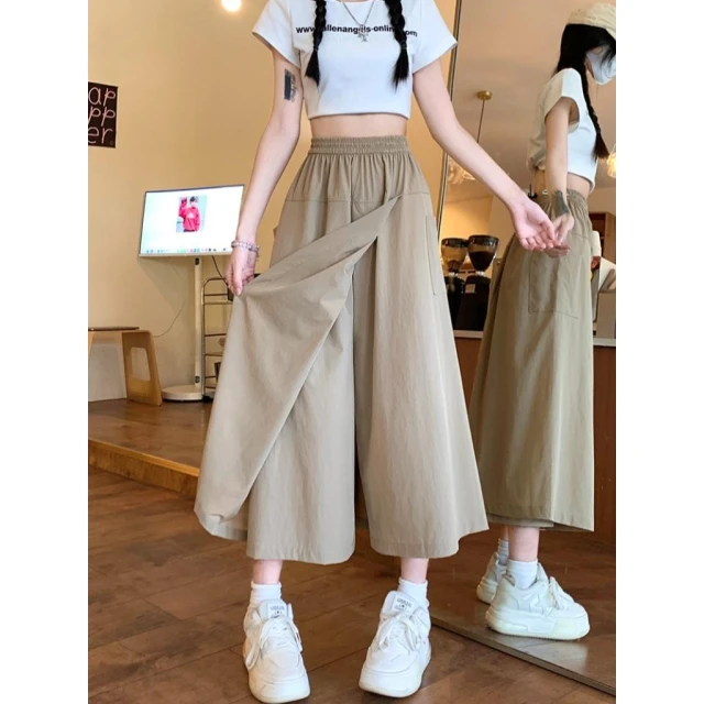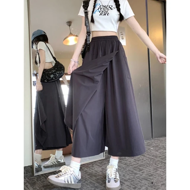 加大尺碼 山本 皺 工裝 裙褲 女 夏季 褲裙 小個子 褲子 女生衣服 女裝 SG04931(#女裝 #韓版 #休閒 #休閒褲 #長褲)