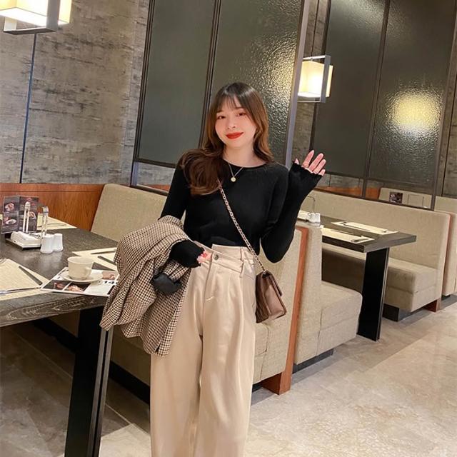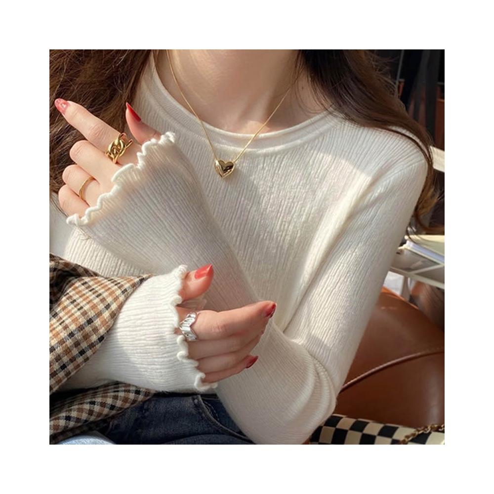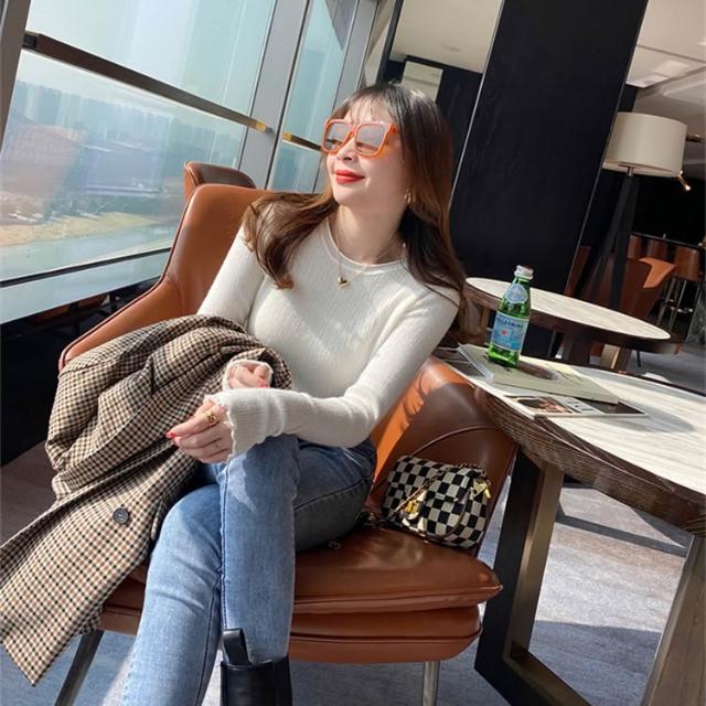 白色 針織 打底衫 秋冬 女裝 女生衣服 內搭 修身 毛衣 木耳邊 長袖 上衣 毛衣 針織 針織上衣 氣質(#女裝 #韓版 #針織衫 #上衣)