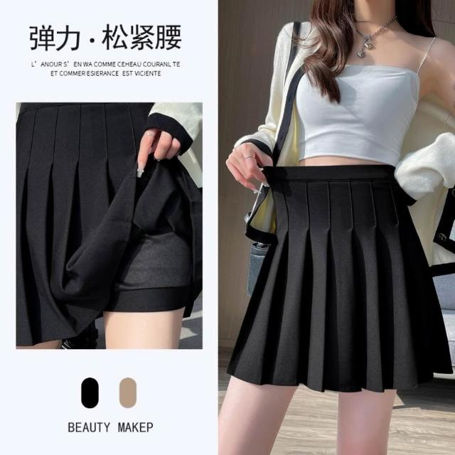 鬆緊腰+加長+安全褲+拉鍊百褶裙JK制服裙子半身裙春夏季短裙秋冬高腰學院風學生制服A字裙傘裙COS SG03117