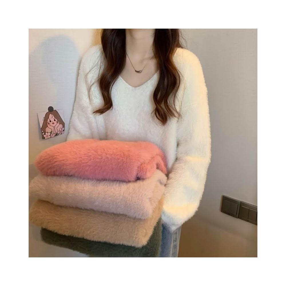 毛衣 秋冬裝 女裝 女生衣服 白色 V領 外套 上衣 毛衣 針織 針織上衣 氣質穿搭 學院風 日系