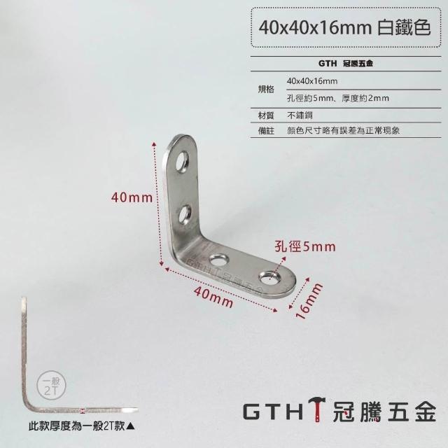 不鏽鋼角鐵 40*40*16MM 2T 白鐵色 (五入) / L型 角鐵 補強L角 內角鐵 固定L片 冠騰五金