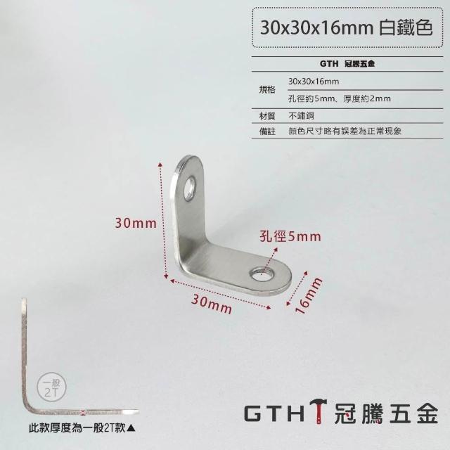 不鏽鋼角鐵 30*30*16MM 2T 白鐵色 (五入) / L型 角鐵 補強L角 內角鐵 固定L片 冠騰五金