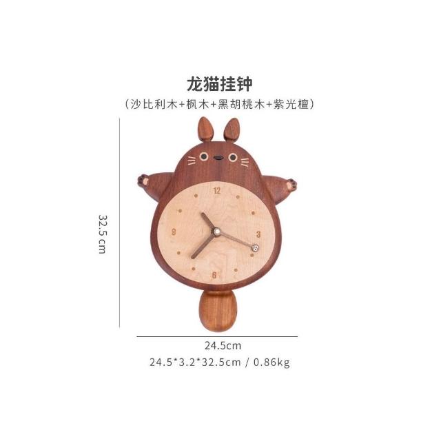 龍貓掛鐘 實木擺鐘 可愛客廳牆面裝飾 裝飾時鐘 多功能掛牆 簡約時鐘 數字時鐘 超靜音時鐘 掃秒機芯 卡通時鐘