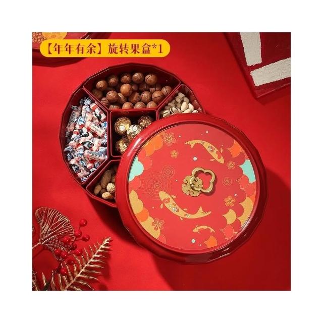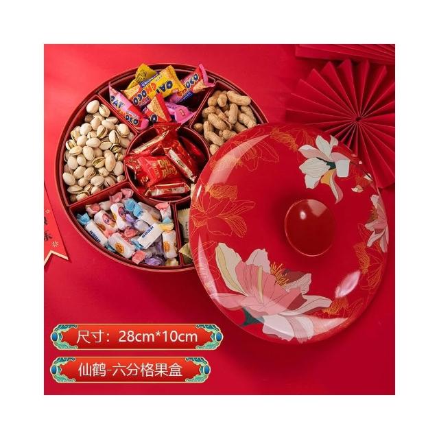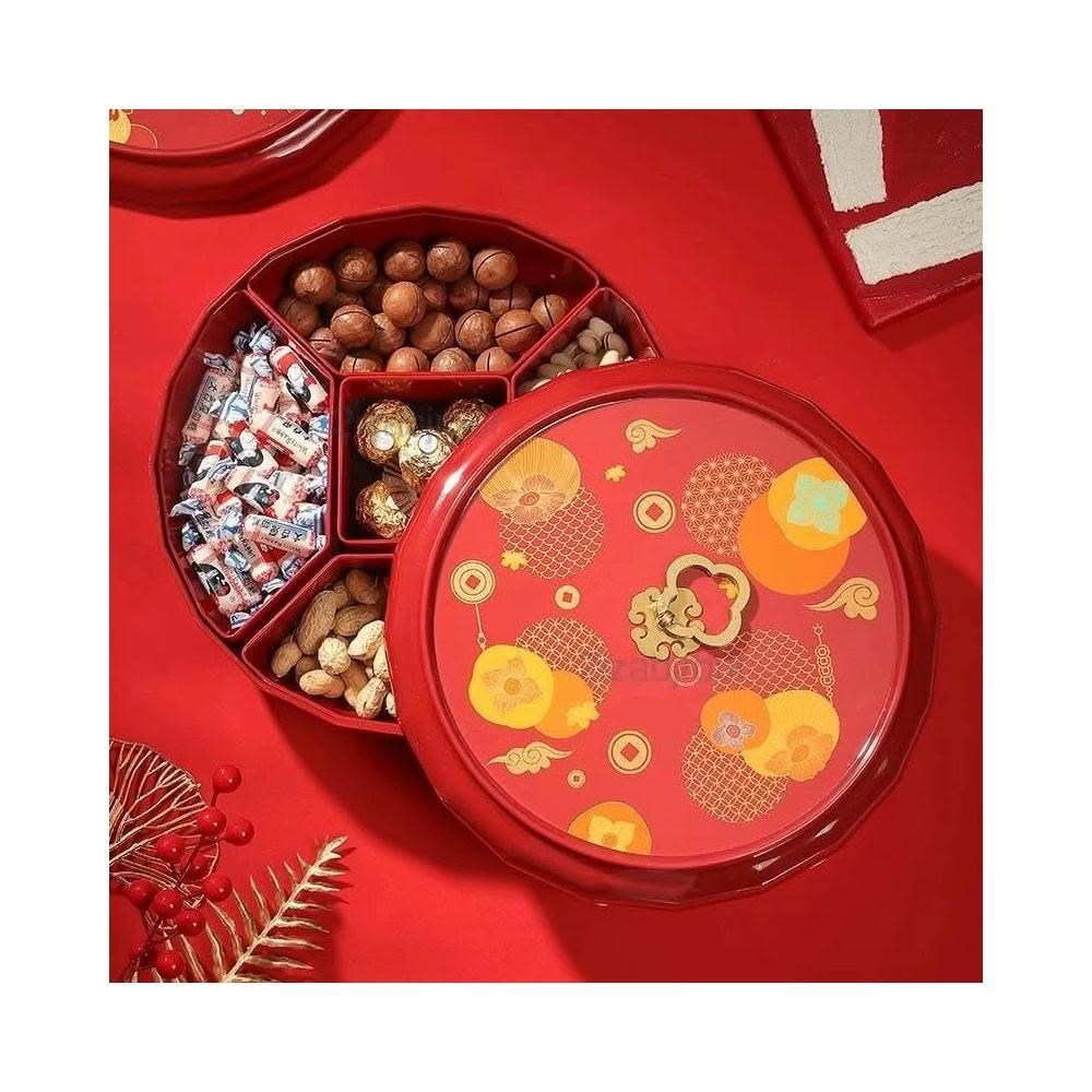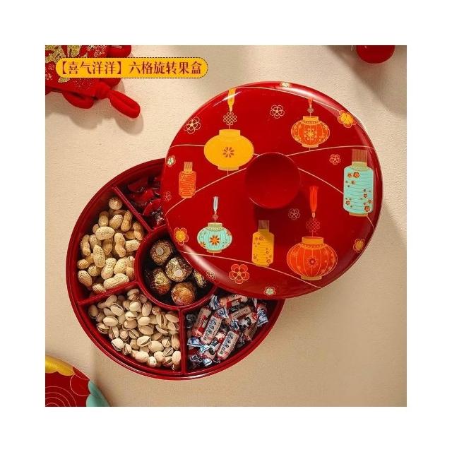 新年旋转果盘 家用高端高颜值糖果盒 红色干果收纳盒 过年零食摆放盘 零食點心分格盤 堅果盤 幹果盤 零食分格盤
