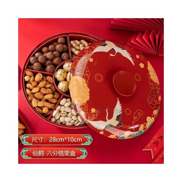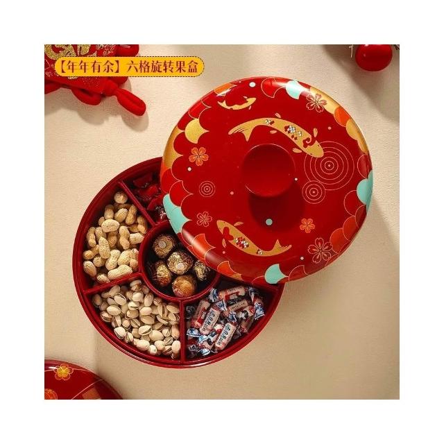 新年旋转果盘 家用高端高颜值糖果盒 红色干果收纳盒 过年零食摆放盘 零食點心分格盤 堅果盤 幹果盤 零食分格盤