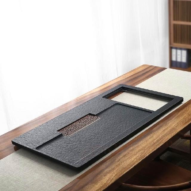 天然乌金石茶盘 嵌入式全自动烧水一体家用新款火烧石茶台 不带电器 小茶台 茶托盘 茶海 茶盘 茶具