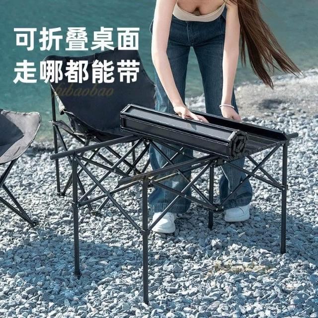 多功能蛋卷桌 野餐月亮椅 野營裝備休閑桌 碳鋼合金蛋卷桌 小型地攤桌 戶外摺疊桌椅 便攜式摺疊桌 燒