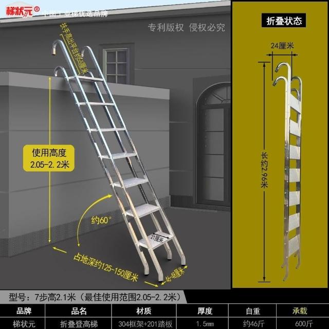不銹鋼摺疊梯子 家用折疊樓梯 貨梯 工業梯 踏步梯 爬梯 閣樓梯 階梯 上車梯 工作梯 工具梯 多功