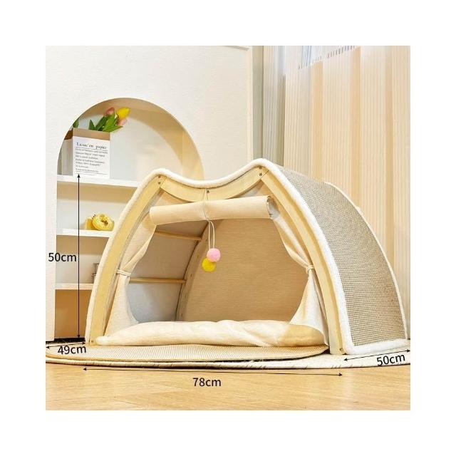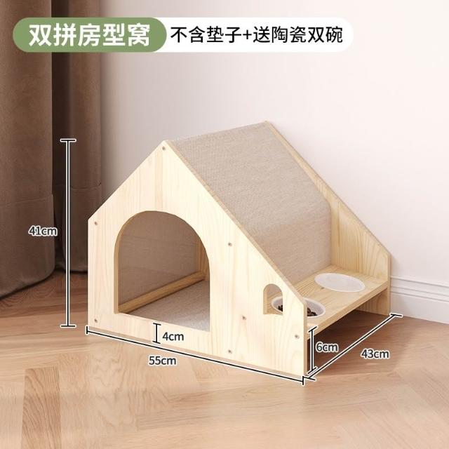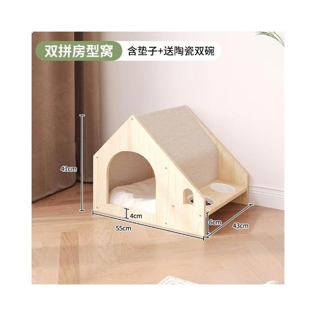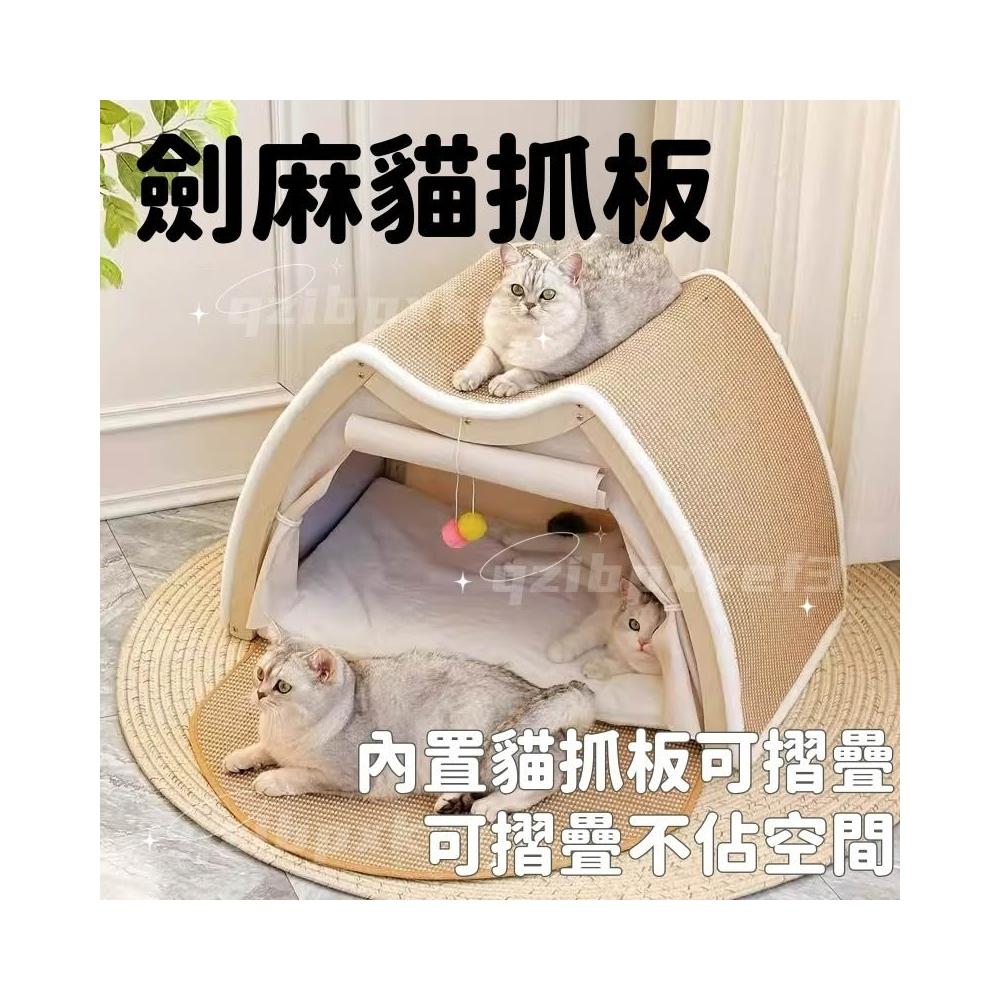實木貓咪屋 劍麻貓抓板 封閉式貓窩 一體貓帳篷 四季通用 耐磨超大狗窩 寵物帳篷 多貓可用 頂部可睡