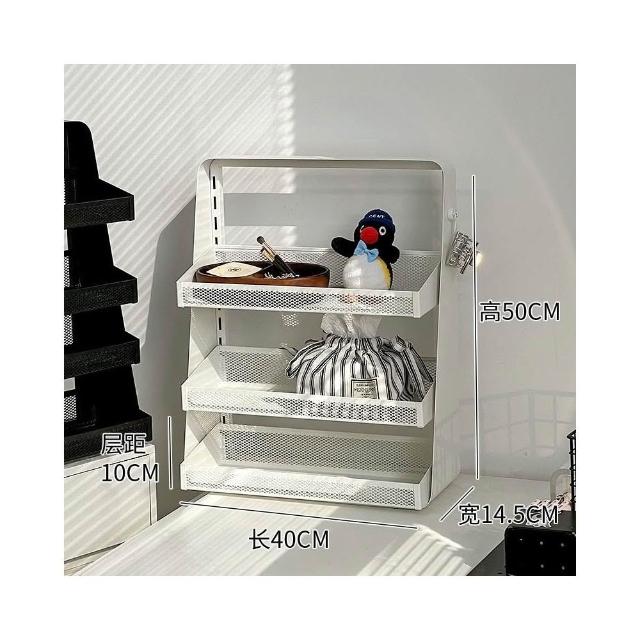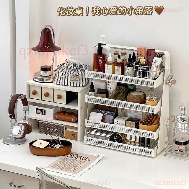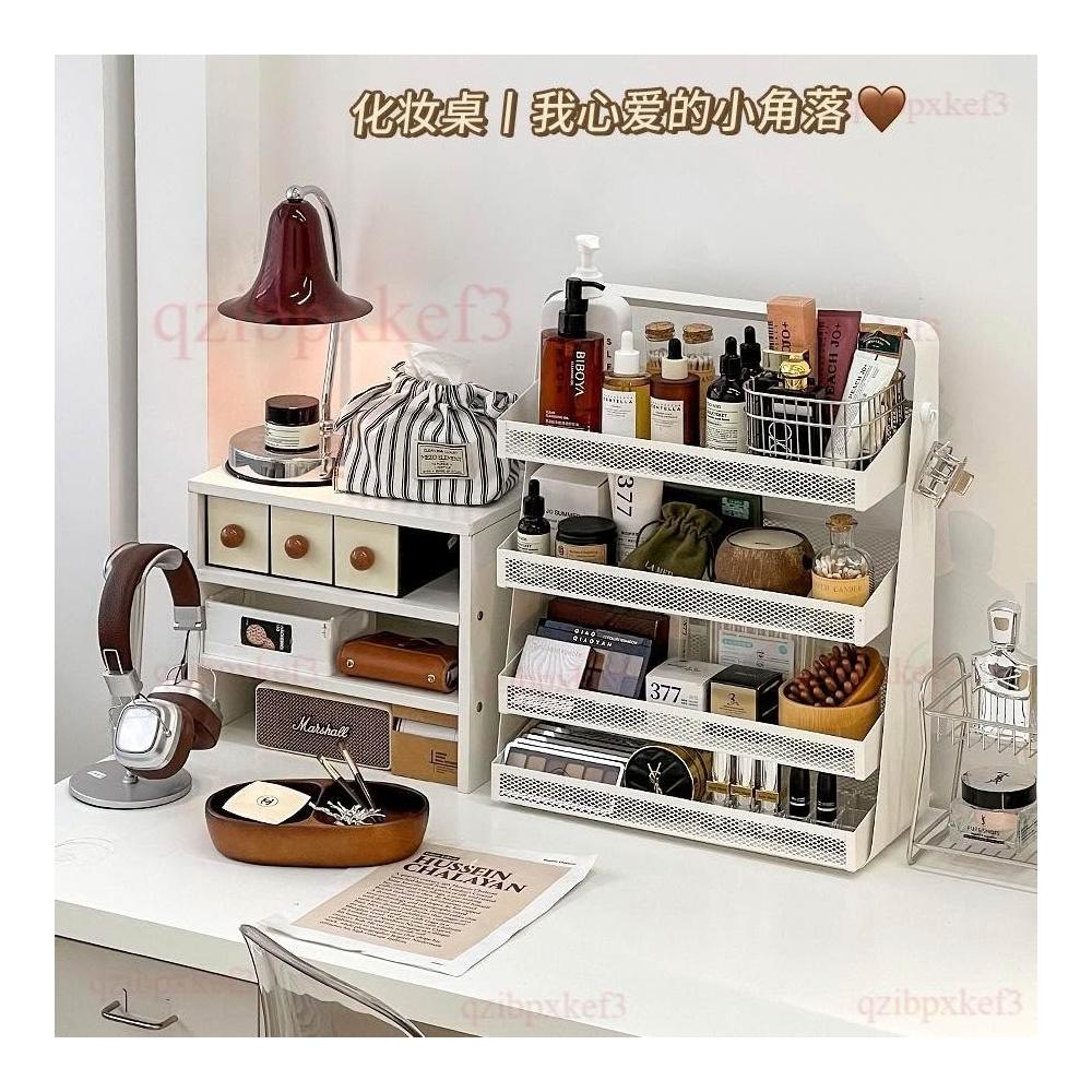 鐵藝化妝品置物架 桌面口紅護膚品儲物盒 香水小樣分層收納架 梳妝檯收納盒 書桌置物架 文具收納整理盒