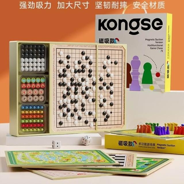 磁吸 多功能 棋盤 多合一 套裝 棋類 益智玩具 兒童 飛行 跳棋 象棋 五子棋 磁性 益智遊戲 團