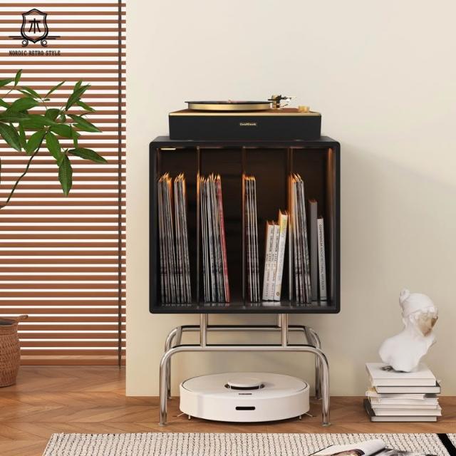 家用立櫃 黑膠唱片機柜 靠墻小書櫃 多功能收納櫃 專輯展示架 雜誌櫃 小戶型唱機櫃 唱片機置物架 雜