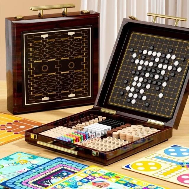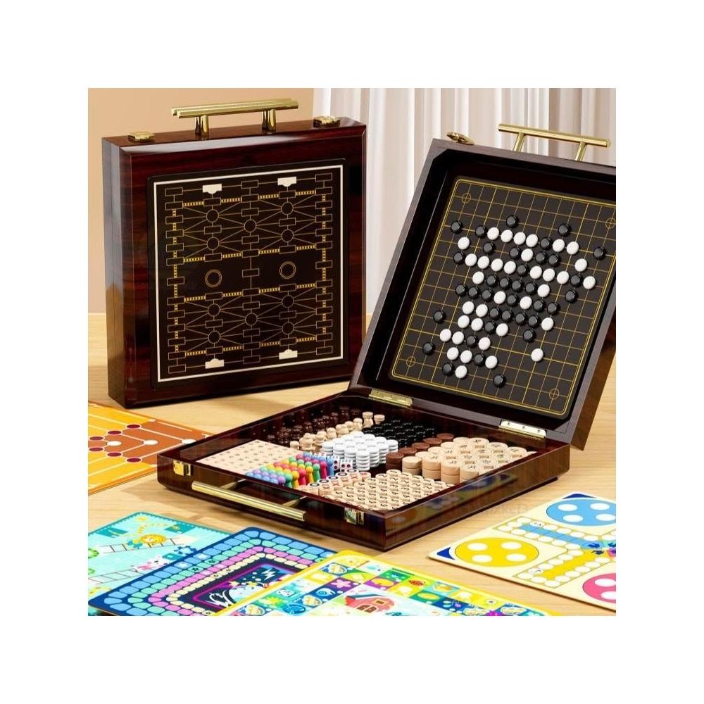 兒童 多功能 棋盤 木質 多合一 桌遊 棋類 大全 跳棋 飛行棋 五子棋 象棋 益智玩具 親子互動