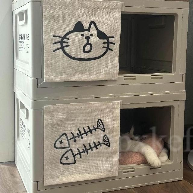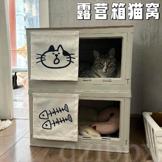 露營箱貓屋 自製貓舍 家用收納櫃 室內大號貓窩 保暖防寒貓窩 四季通用 冬日寵物窩 環保寵物窩 寵物