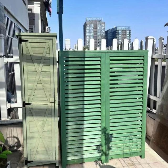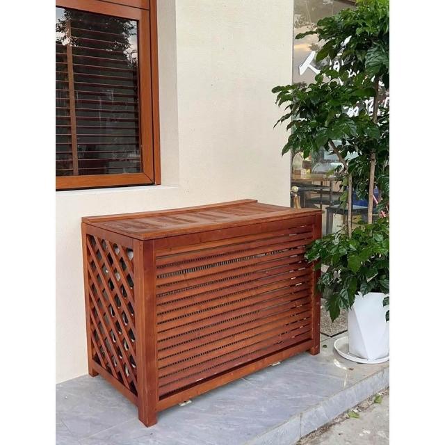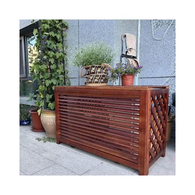 防腐木空調外機保護罩 定做外機罩 機箱罩 戶外防雨防曬置物架子 空調外機罩 通風口 外牆圍欄 圍欄 護欄
