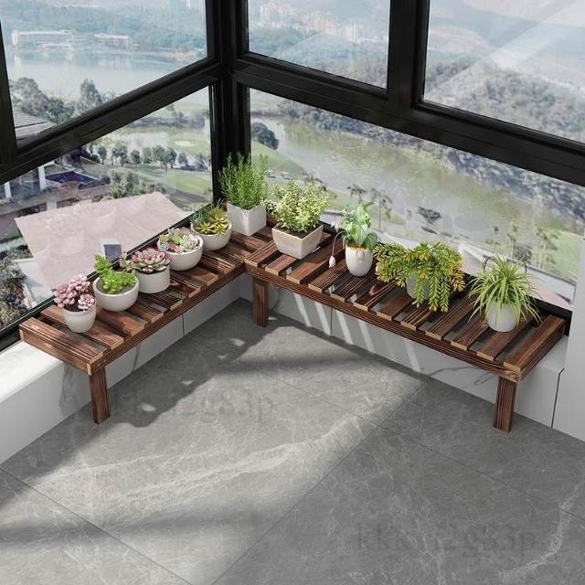 檯面陽台架子 台沿實木花架 窄腳盆栽架 防腐落地花架 窗台延伸架子 加寬盆栽架 多肉花盆架子 花盆底