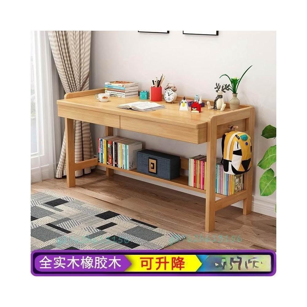 實木學習桌 小學生可升降家用橡膠木寫字台 電腦桌 原木書桌 實木電腦桌 實木書桌 學生書桌