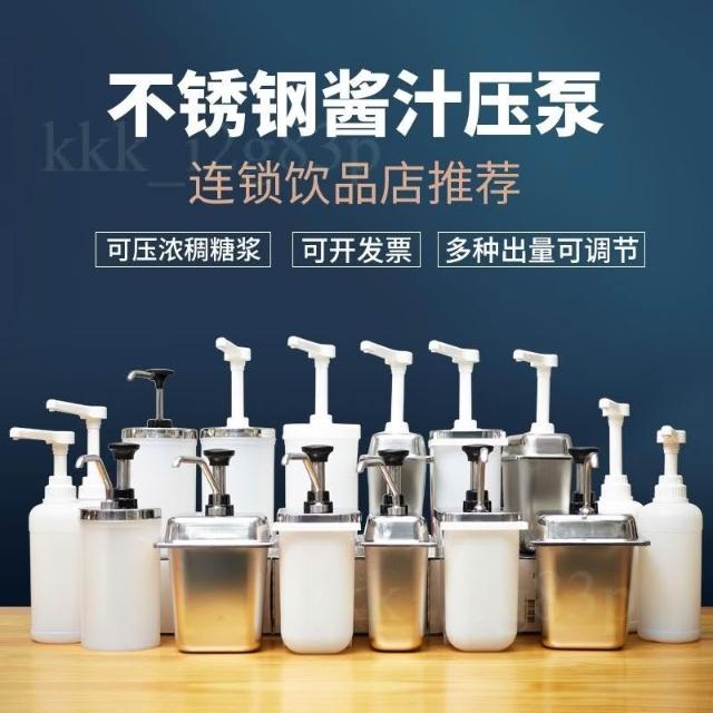 奶茶糖漿按壓機 定量按壓頭 醬汁果糖定量器 手壓式壓汁壺 壓泵 不銹鋼醬汁泵 糖壓瓶 濃稠果醬壓泵