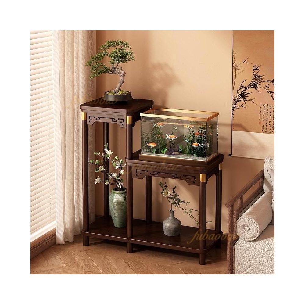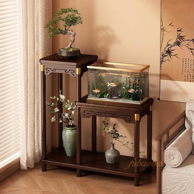 實木中式博古架 茶室小型魚缸架 室內高級感花架子 客廳落地式置物架 展示櫃 化妝品架 復古擺飾櫃