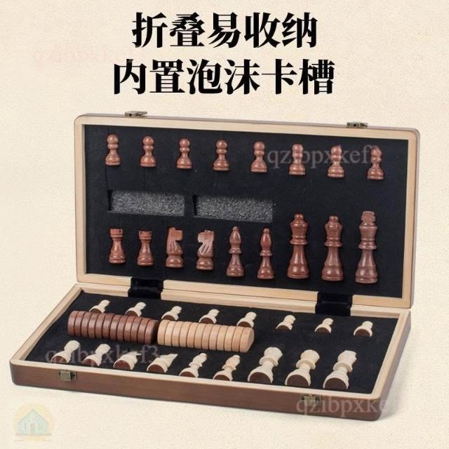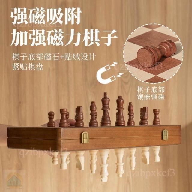 木質磁性國際象棋 便攜摺疊棋盤 兒童成人棋盤 大號跳棋套裝 雙後象棋 智力開發 動手動腦 親子交流