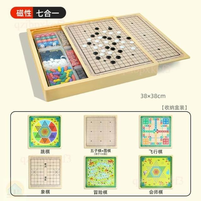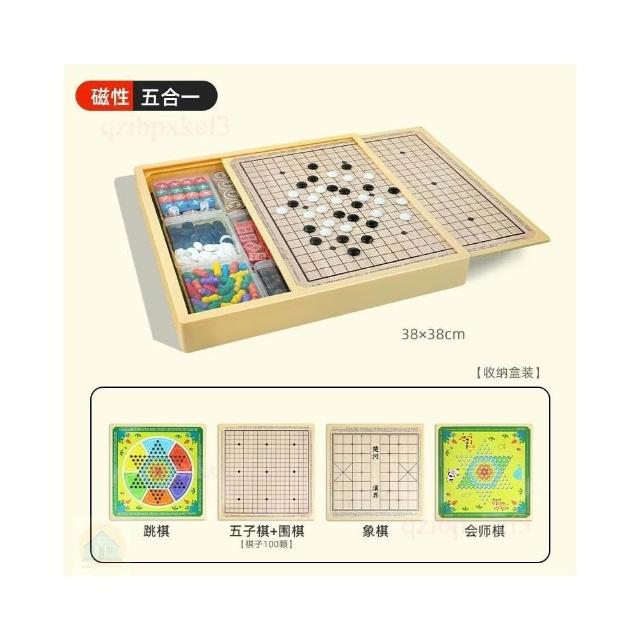 磁吸木製玩具 多功能棋盤 多合一套裝 棋類益智玩具 遊戲棋 多合一桌遊 飛行棋 跳棋 五子棋象棋三