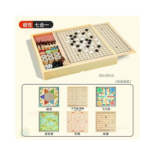 磁吸木製玩具 多功能棋盤 多合一套裝 棋類益智玩具 遊戲棋 多合一桌遊 飛行棋 跳棋 五子棋象棋三