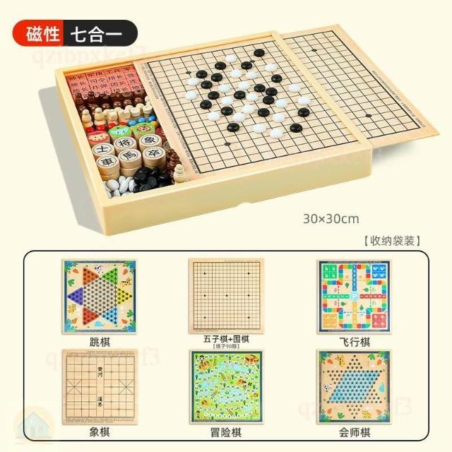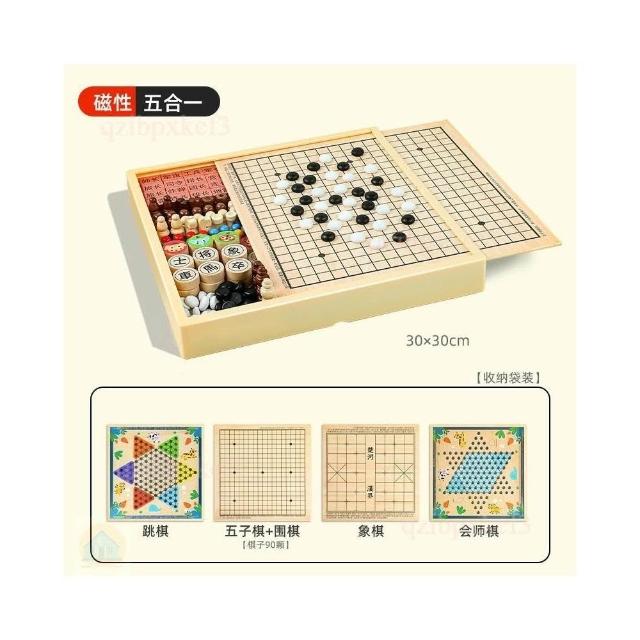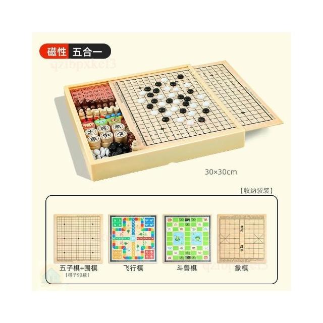 磁吸木製玩具 多功能棋盤 多合一套裝 棋類益智玩具 遊戲棋 多合一桌遊 飛行棋 跳棋 五子棋象棋三