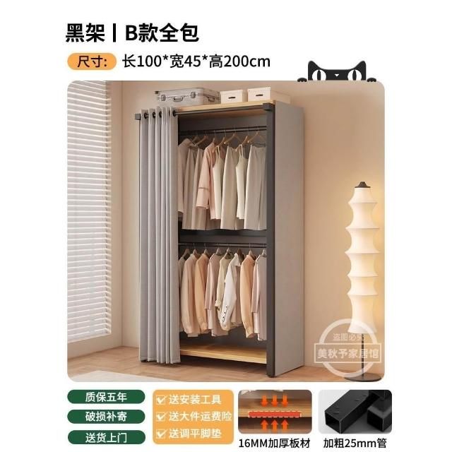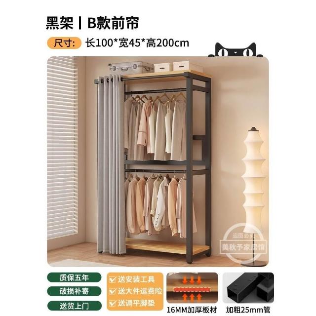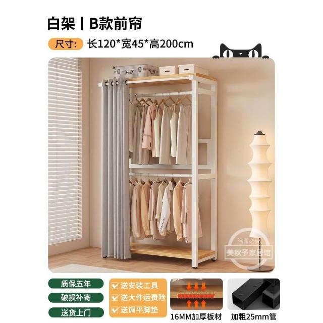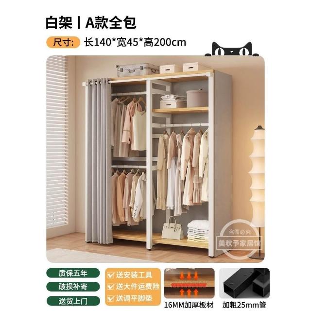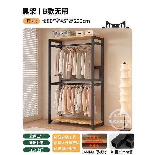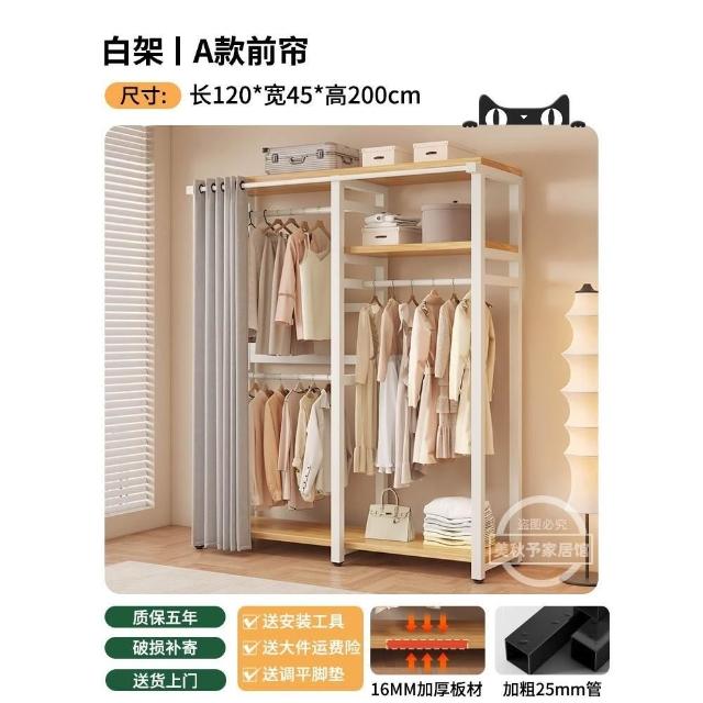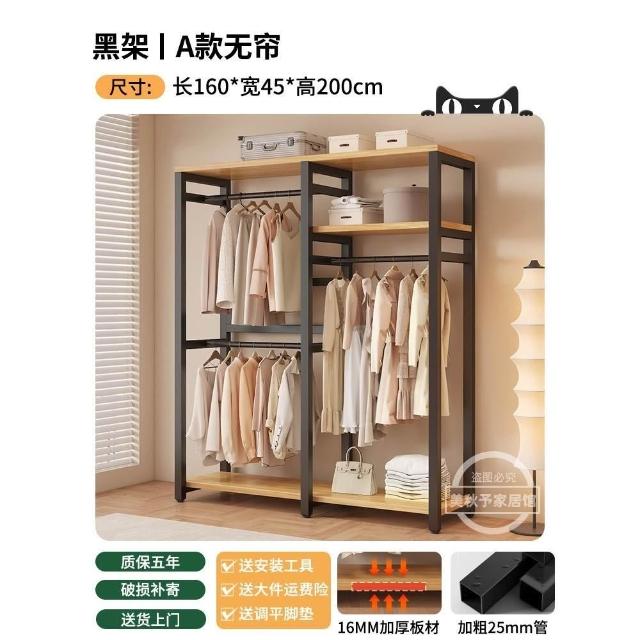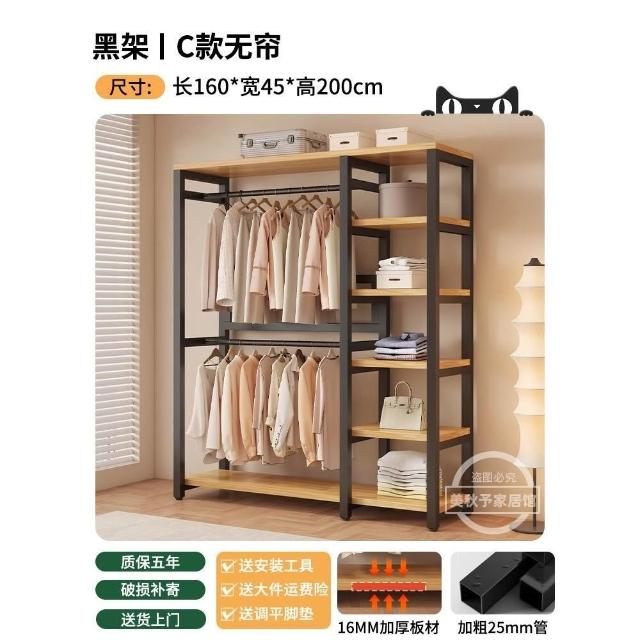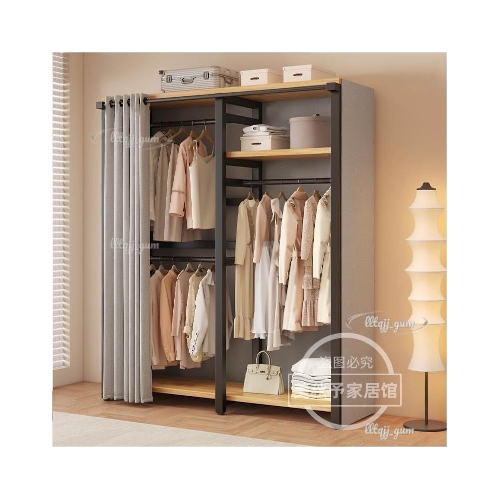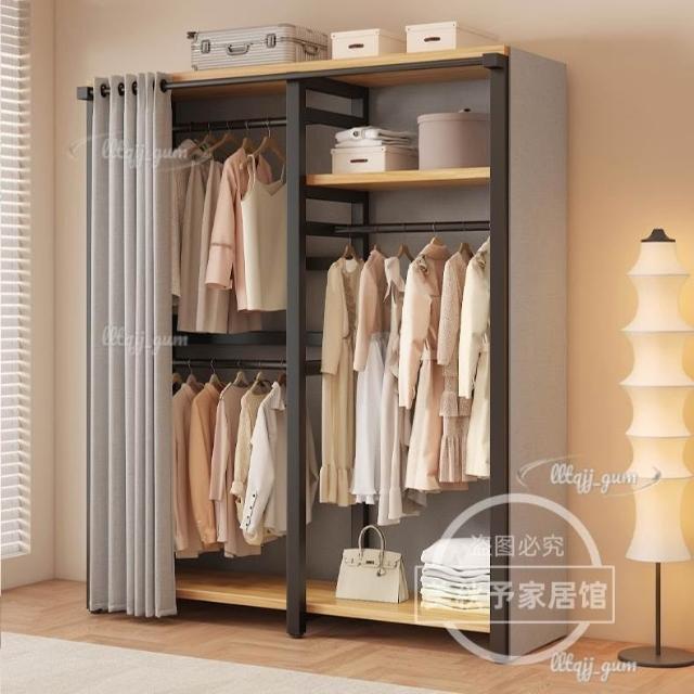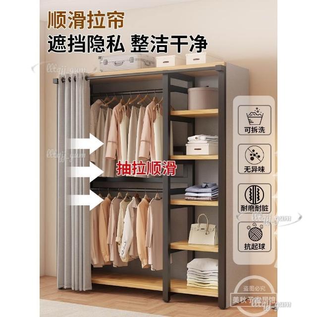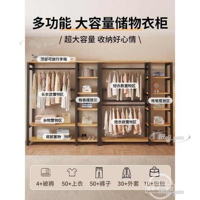衣帽架 落地臥室組合防塵置物架 簡易衣櫃 金屬一體衣服放置架 開放式收納掛衣架