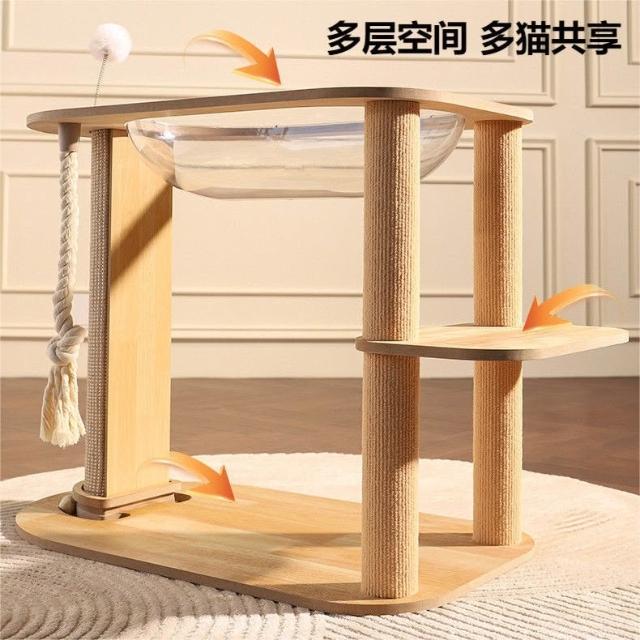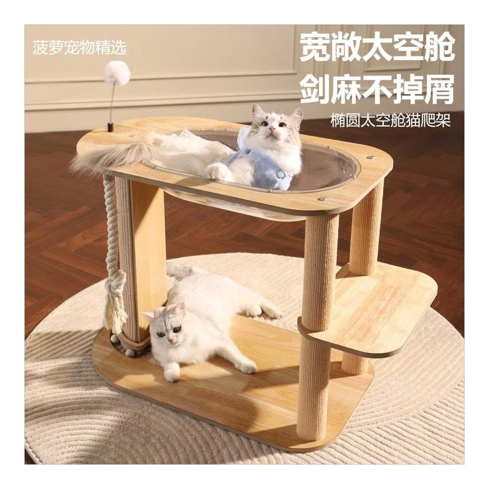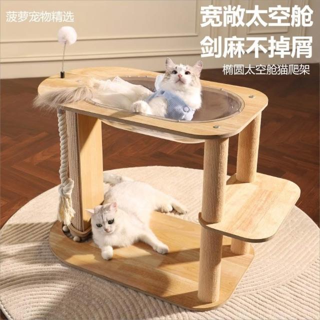 貓爬架 實木實用 實木貓窩 貓爬架貓爬架太空艙劍麻柱貓窩中小型玩睡一體不佔地耐抓木質貓抓板貓樹